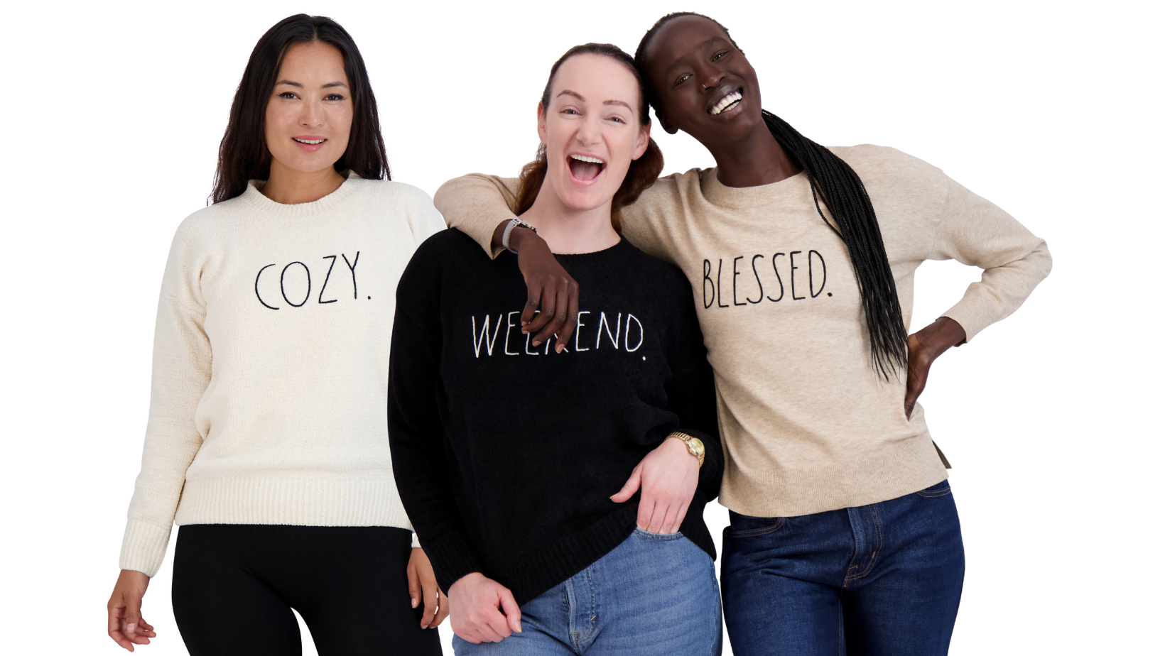 For years, we have welcomed Rae Dunn's iconic kitchenware, accessories, and décor into our homes. They remind us to celebrate the moments of everyday life...and to celebrate ourselves. Now, we bring the classic Rae Dunn style and attitude to a wearable collection.