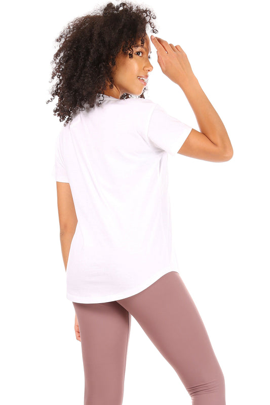 Women's "HAPPY THOUGHTS" Short Sleeve Shirttail Hem T-Shirt