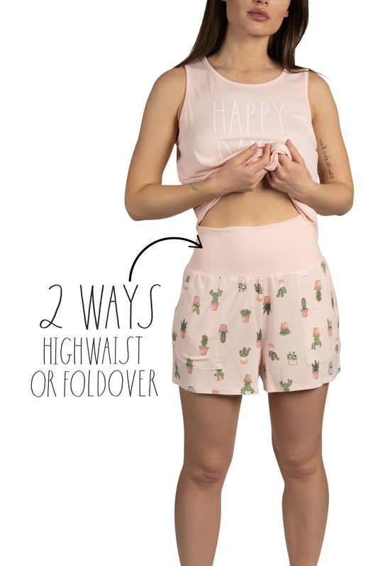 Women's "HAPPY DAYS" Ribbed Tank and Foldover Waist Shorts Pajama Set
